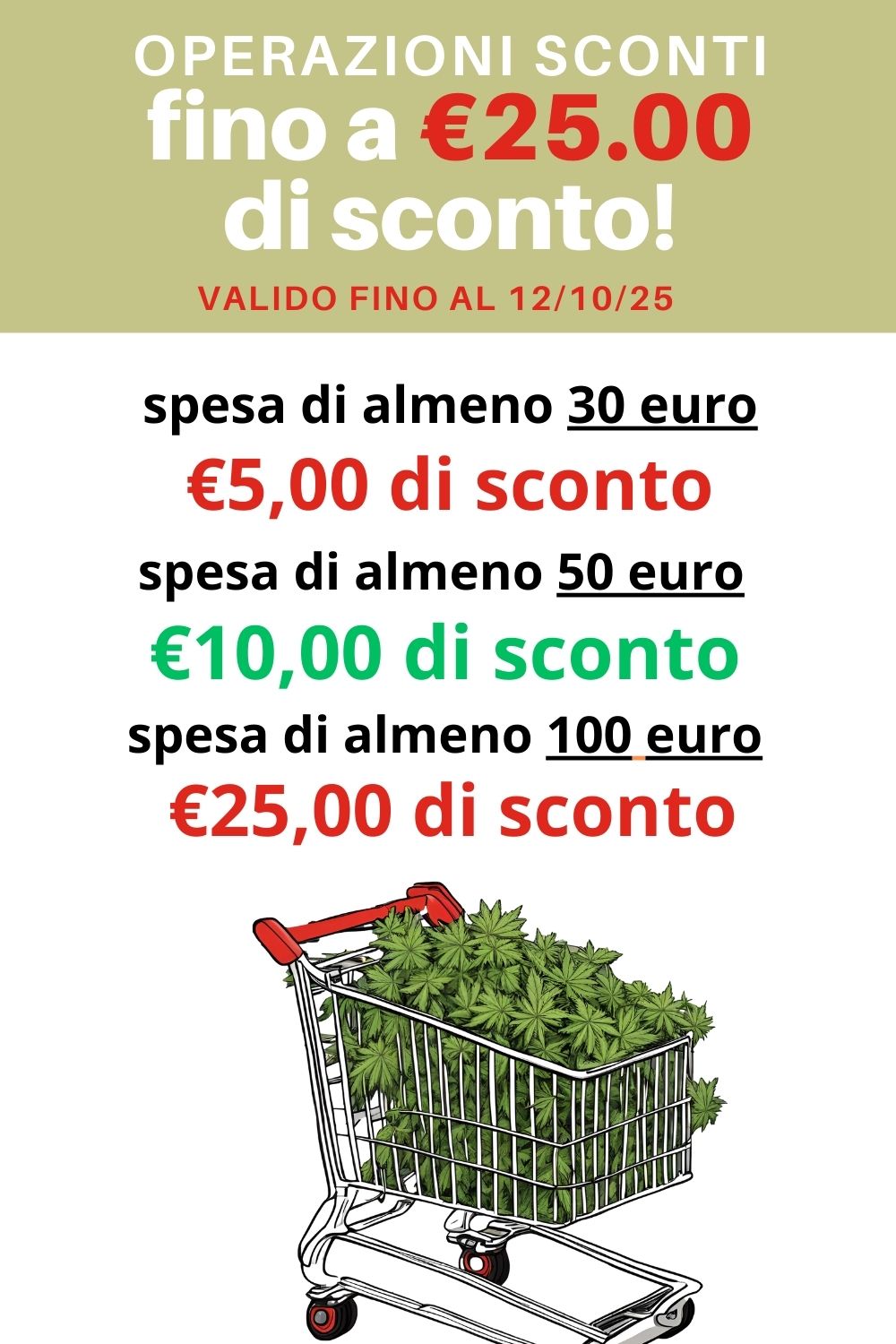 10 gr., 25 gr., 4+2 (paghi 4 grammi e ne ricevi 6), 🆕 6+3 (paghi 6 e ne ricevi 9), 1 gr. |